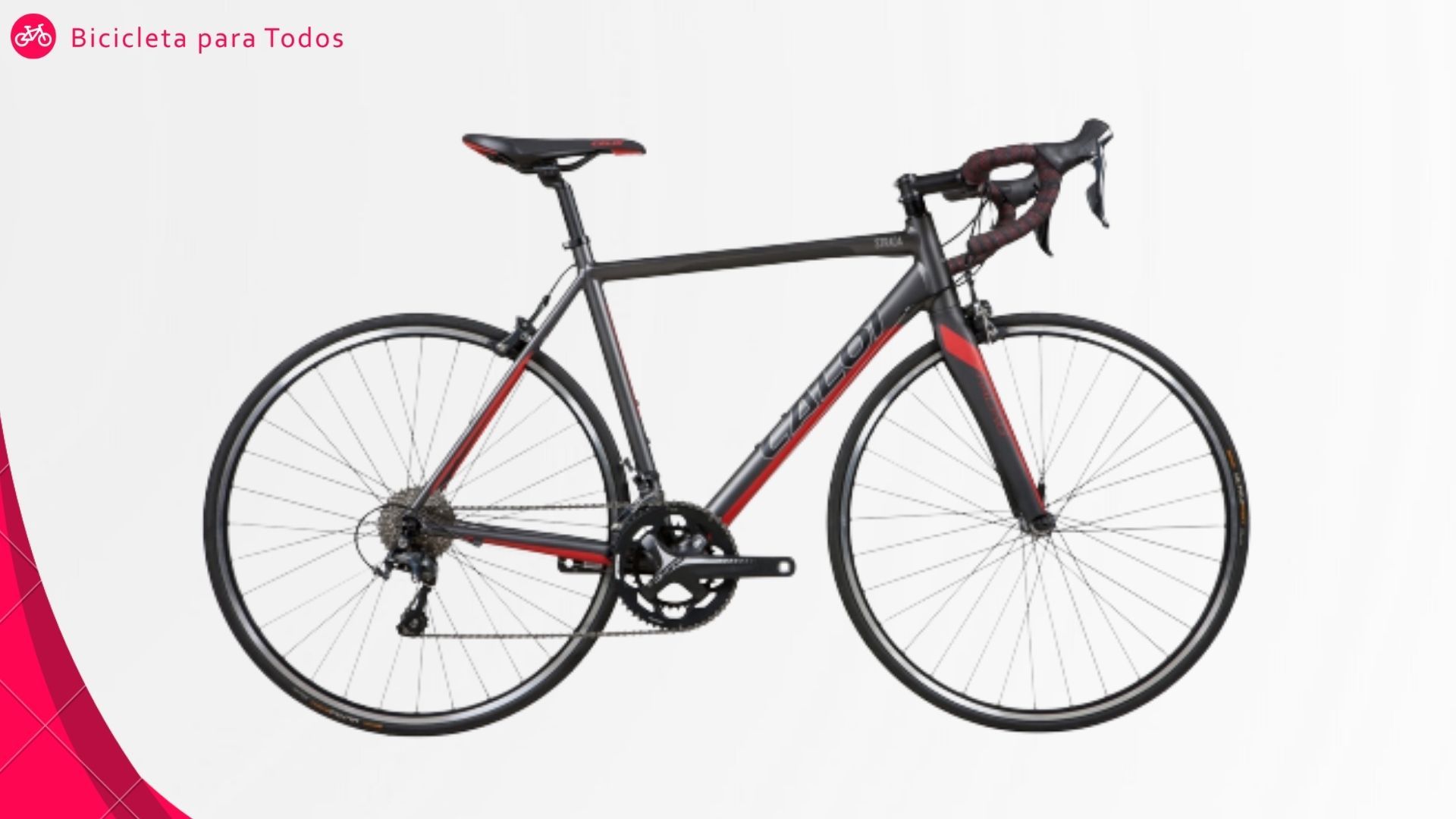 A Caloi Strada é uma bike leve com o grupo modelo Claris como os trocadores, freios, câmbio e pedivela. Se dá bem em pequenas subidas.